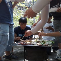 ぶどう狩り入園料(入園料×各人数) + バーベキュー利用料(\3,000/基) + 食材(\2,700×人前)