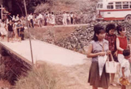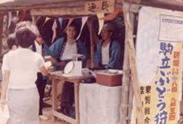 その後、昭和35年に名鉄バス路線が開通しました。運行が開始されたのを期に、当時安城の梨狩り・矢作のイチゴ狩りなどを見て、観光農園の話がもちあがり、名鉄・市・農協など各団体の協力を得て、駒立町果樹組合にて駒立ぶどう狩りを始め、翌年には駒立ぶどう狩り組合を設立しました。